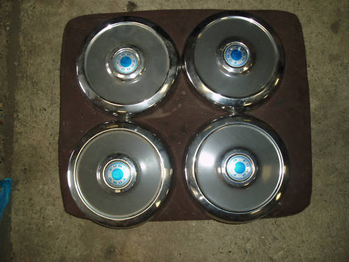 | To są oryginalne dziobakowe kołpaki. Pas pomiędzy rantami powinien byc pomalowany na ciemno-szaro - w środku jest niebieska nalepka z napisem Ford pisanym tą starszą czcionką. Jakiś czas temu widziałem reprodukcje tej nalepki na ebayu ale teraz juz nie pomnę gdzie :) |